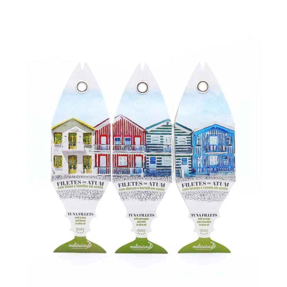 Ingredientes: Atum (65%); azeite (24%); laranja (8%); pau de canela (2%) e sal.