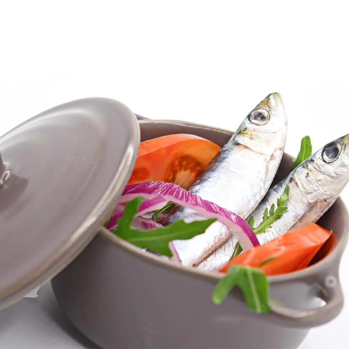 Ingredientes: Sardinhas (70%), óleo vegetal de soja (29%), sal (1%).