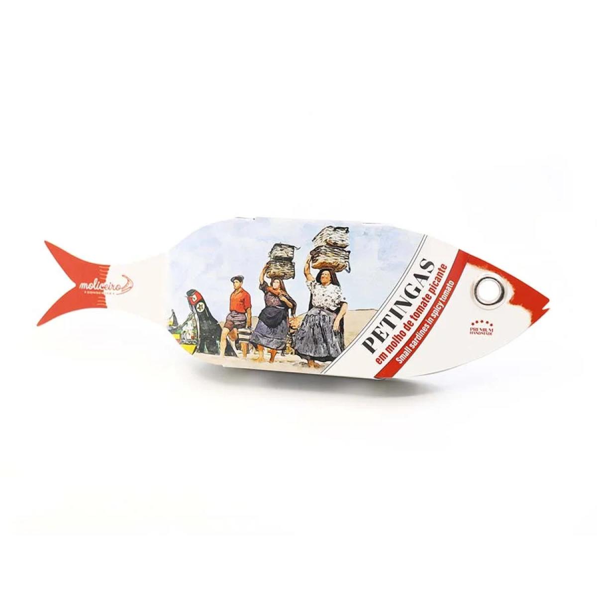 Após preparada à mão, a Petinga selecionada é pré-cozida, depois enlatada e coberta num delicioso molho de tomate, para dar mais sabor e textura à conserva.